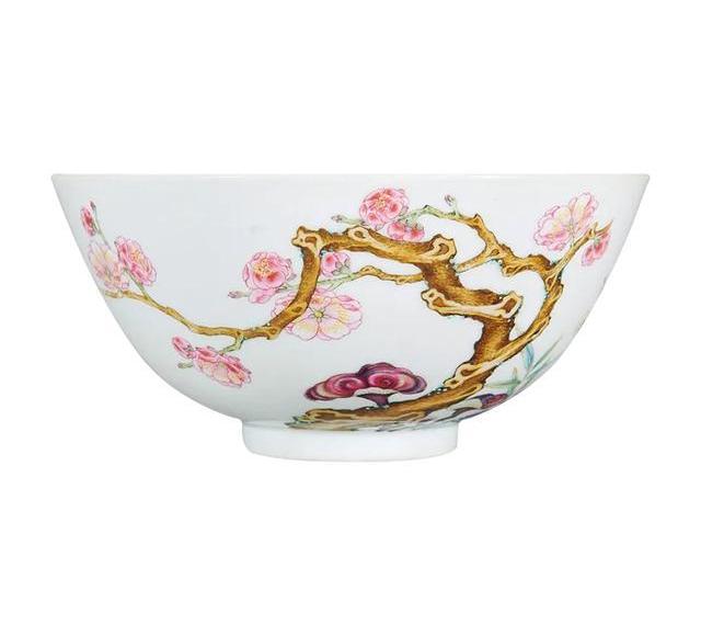 lot1111清雍正粉彩及琺瑯彩梅竹先春芝仙祝壽圖碗