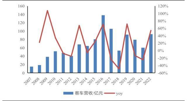 2007年客車營收15億元,至2022年達到93億元,同比增幅5.2倍。