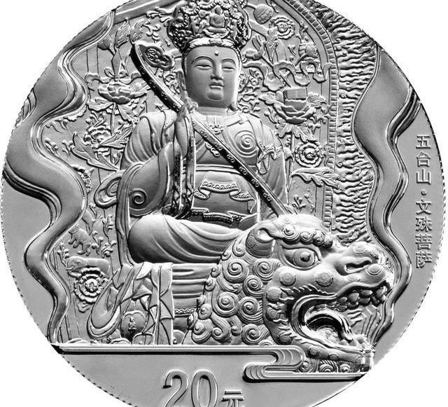 2012年中國人民銀行發行中國佛教圣地金銀紀念幣一套,該套紀念幣共5枚,其中金幣3枚,銀幣2枚。普陀山的佛光寺、顯通寺、菩薩頂、塔院寺等建筑都出現在金銀幣上。2盎司銀幣背面圖案是文殊菩薩造像。