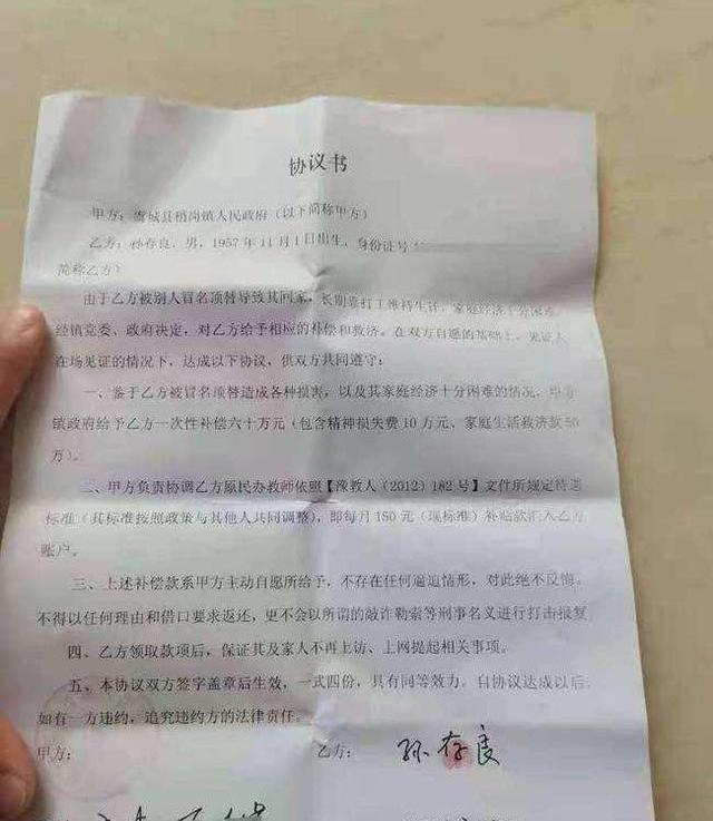 最終政府同意了他提出的60萬補償金,2021年3月10日,孫存良拿到了蓋著政府公章的協議書和補償款。