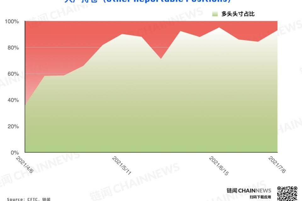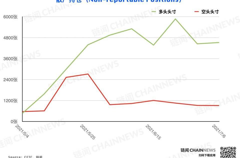 散戶持倉方面,多頭頭寸自1107張上升至1153張,空頭頭寸自317張同步上升至394張。散戶在最新統計周期內調倉幅度仍然不大,不過考慮到是同步增持,因此可以認為散戶對于以太坊的參與熱度同樣明顯上升,以太坊在短期內較之比特幣略強的市場表現還是吸引了更多市場參與者的目光。。