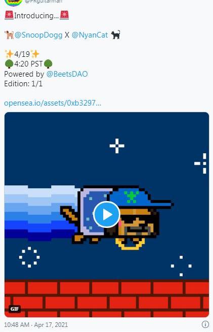 MEME的神奇之處在于它們的短暫性和可復制性。奇怪的是,NyanCat是由一個人創造的,因為它經過了這么多手。(SnoopDogg甚至與Torres合作,對名為“NyanDogg”的NyanCat進行了改動;最終以3.3萬美元的價格售出。)