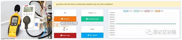 配置完礦池后 A10 Pro 礦機會自動調頻開始挖礦,根據實測情況顯示 A10 Pro 礦機修改完礦池后前10分鐘左右不會顯示算力數據,10分鐘后算力開始慢慢調整上升,礦機功耗會隨著算力的提升慢慢升高,礦機整體噪音水平低于 80 分貝,在 74-79 分貝間波動。
