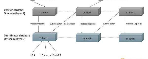 處理每筆交易后,運營商更新匯總的?Merkle?根以反映當前狀態。新的?Merkle?根被提交到1?層區塊鏈。