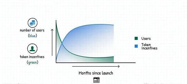 值得一提的是,過去用戶曾經放棄支持帶有代幣的項目,而轉向現有的巨頭。陷阱在于,創始人認為通過代幣激勵獲得的用戶很有粘性。在理想情況下,代幣激勵與產品用戶之間的關系應該像下面這張圖一樣。