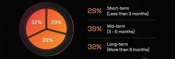 29%的受訪投資者偏好短期投資,39%的投資者喜歡中期投資,32%的投資者會投資GameFi6個月以上。