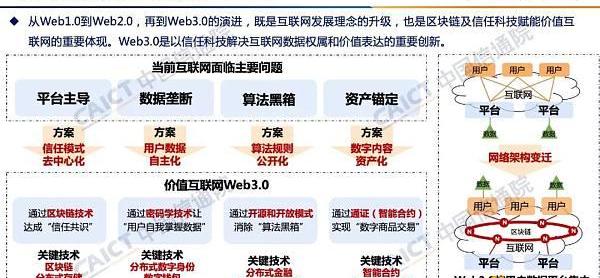 4.信任科技以區塊鏈等多技術融合為核心,著力打造新時代數字信任基礎設施。隨著數字經濟時代到來,區塊鏈與其他新一代信息技術交叉融合,其信任價值將被進一步激發,為信任科技積蓄能量。信任科技以構建數字化信任基礎設施為目標,既是數字經濟新時代對于數據要素全流程可信管理的必然要求,也是Web3.0發展中解決互聯網數據要素權屬和交易流通問題的重要創新。