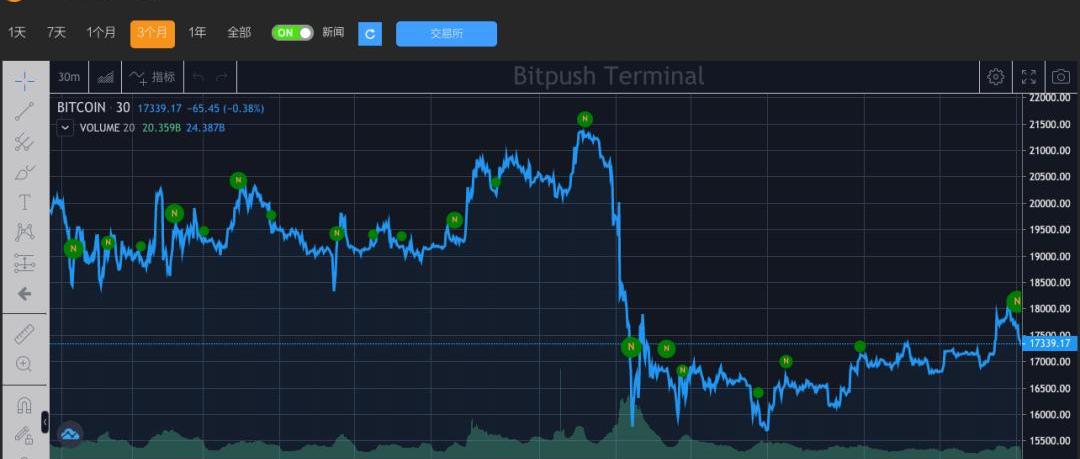 加密市場也繼續下滑。比推終端數據顯示,截至發稿時,比特幣交易價格約為17,400美元,24小時跌幅4%。以太坊在過去24小時內下跌了5%,交易價格為1,271美元。