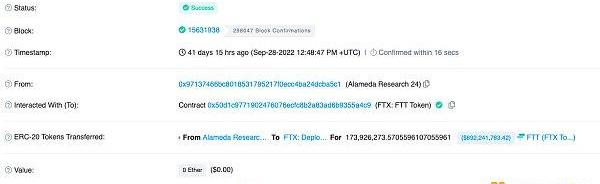 40天前,價值超過40億美元的1.73億枚FTT代幣在鏈上轉移。