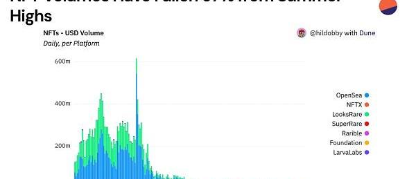 NFT市場驟冷,交易量自今夏高點下跌了97%。