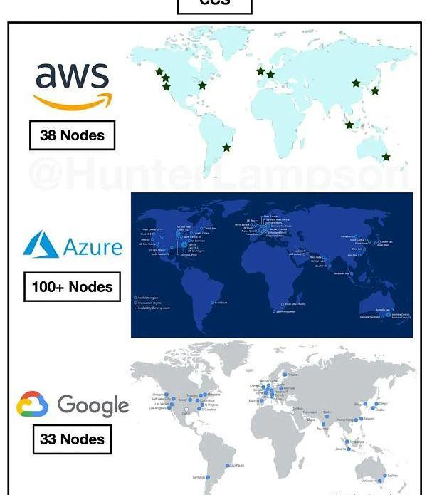 與CCS解決方案相比,DCS解決方案具有革命性的地方在于其去中心化程度。在Sia、Storj、Filecoin和Arweave上運行的活動節點比AWS、Azure和谷歌Cloud管理的數據中心總和多114倍以上。
