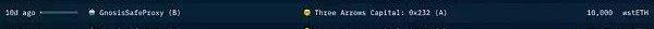在6月8日,或許3AC仍然對他們的頭寸相當滿意。觀察到錢包?B?從Aave中取出1785個stETH質押品,錢包?E?在0x?Protocol上用9400wETH換成9652stETH。