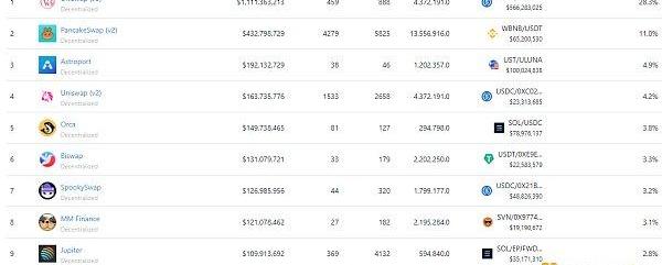 2.過去24小時去中心化交易所的交易量:39.23億美元