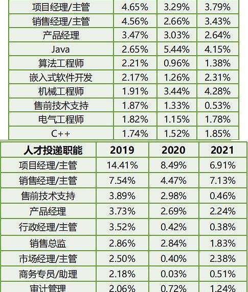 人才投遞職能TOP10,技術類僅有產品運營和產品經理2個,其余均為其它類別,以財務、HRBP投遞最多,且近三年呈現增長趨勢。而產品經理崗近三年卻逐年下降,且下降幅度明顯。