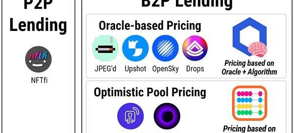 筆記:盡管目前還沒有任何針對NFT的AMM或訂單簿,但Sudoswap(一種去中心化的OTC協議)團隊正在構建SudoAMM。專門為NFT設計的集中流動性AMM協議。SudoAMM的目標是通過降低費用和提供持續的流動資金池,同時維持買賣壁壘(如出價/要價)來接管OpenSea。然而,正如上圖所示,在這篇文章中,我們將重點關注貸款格局,其中出現了兩種旨在持續評估NFT的不同機制。