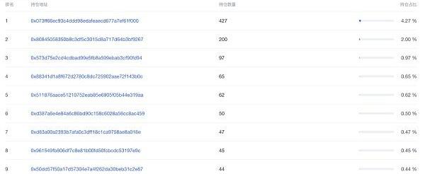 排名前10的地址持有1,077個WoW,其中最多的地址持有427個WoW。