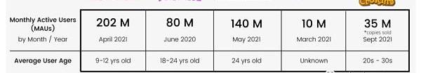MAU和平均用戶年齡的頂級新時代元宇宙平臺。