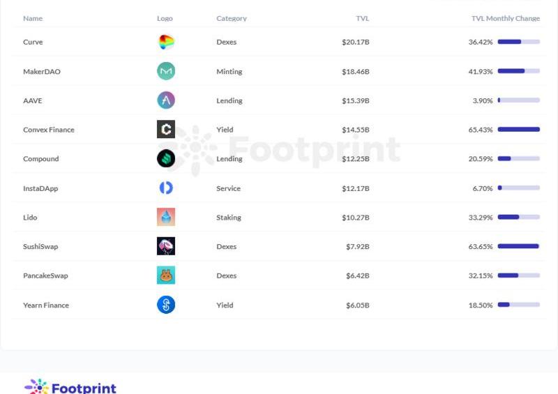 前10大協議TVL排名變化情況?數據來源:FootprintAnalytics