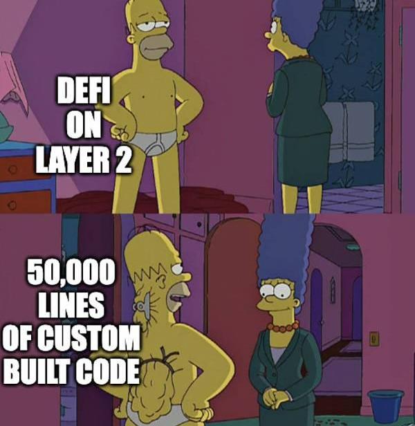由于Uniswap的設計相對簡單,這是可行的,但是當像Solidity變量這樣基本的東西不能再使用時,這可不是一個好兆頭。對于非開發人員而言,其中的難度過高;Uniswap已經是目前最簡單的DeFi智能合約之一,即使Uniswap也需要進行大修才能開箱即用的「兼容Rollup」,這也不是好兆頭!