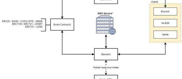 TheSandbox的通證SAND使用ERC-20標準,數字資產的確權和交易使用ERC-1155和ERC-721標準,這些信息都存儲在以太坊區塊鏈上。而數字資產的實際媒體數據存儲在IPFS上,同時使用亞馬遜的S3云服務對網頁前端進行支持,創作者尚未鑄造的數字資產將存儲在S3云服務器上,而數據隱私風險需要進一步使用去中心化存儲方案進行保護。