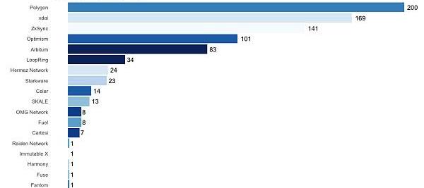 使用得最多得擴容那個方案前三依次是:Polygon、xdai和ZkSync。