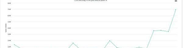 根據CryptoSlam的數據,ArtBlocks繼續攀升,周一創下6940萬美元的單日交易額新紀錄。