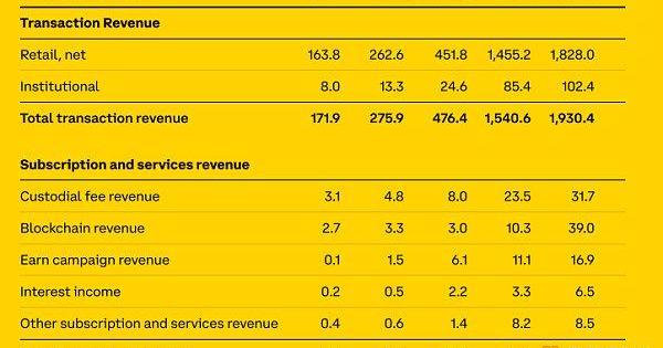 Coinbase表示,散戶交易量的增長主要由月度交易用戶增長驅動;機構交易量由機構投資者增加以及它們在加密貨幣上分配更多資本驅動。