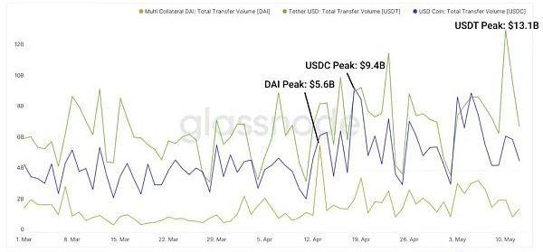 以太坊上每日的穩定幣轉賬在過去3個月中的每個工作日都超過了100億美元。