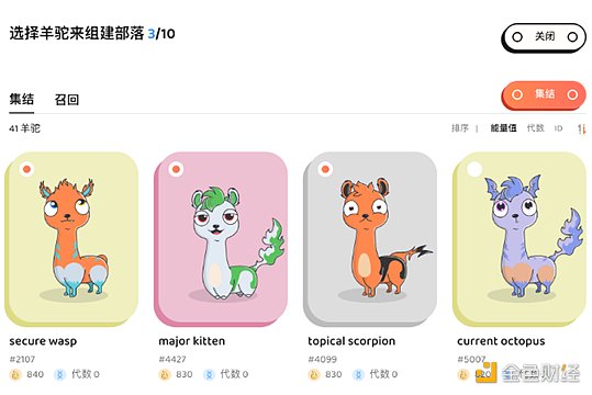 3. 選擇你想要參與部落挖礦的羊駝NFT