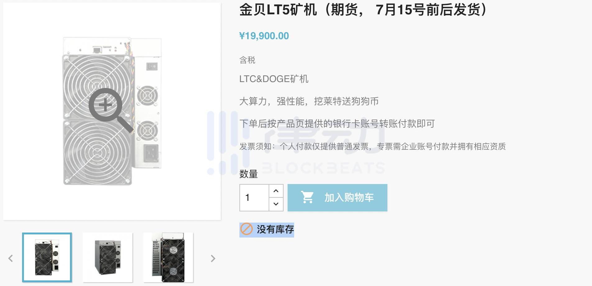 律動調查發現,最近幾周萊特狗狗幣雙挖的礦機價格飛漲,供不應求。
