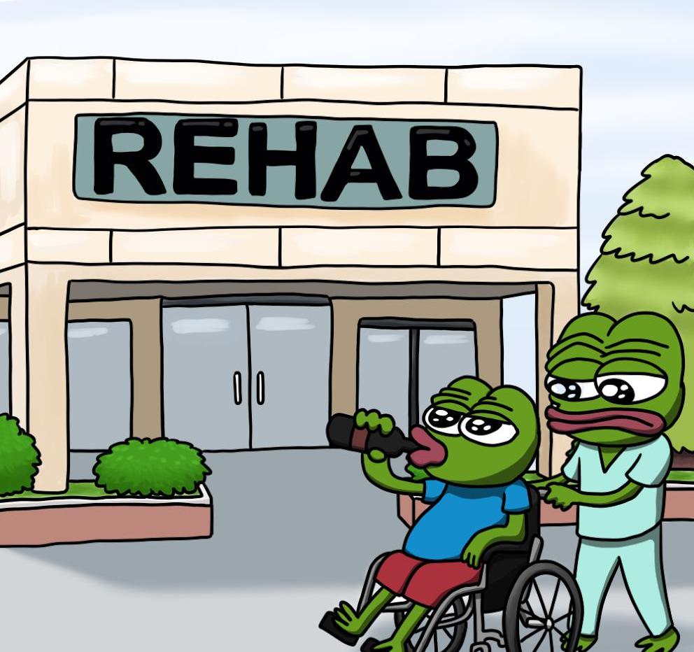 Rehab是rehabilitatio的縮寫,意即康復治療中心,取此名寓意為逃離烏煙瘴氣幣圈文化,可以理解為炒幣黨理療中心,并以此作為敘事線索,出品了「RektPepe」等系列的MemeNFT。