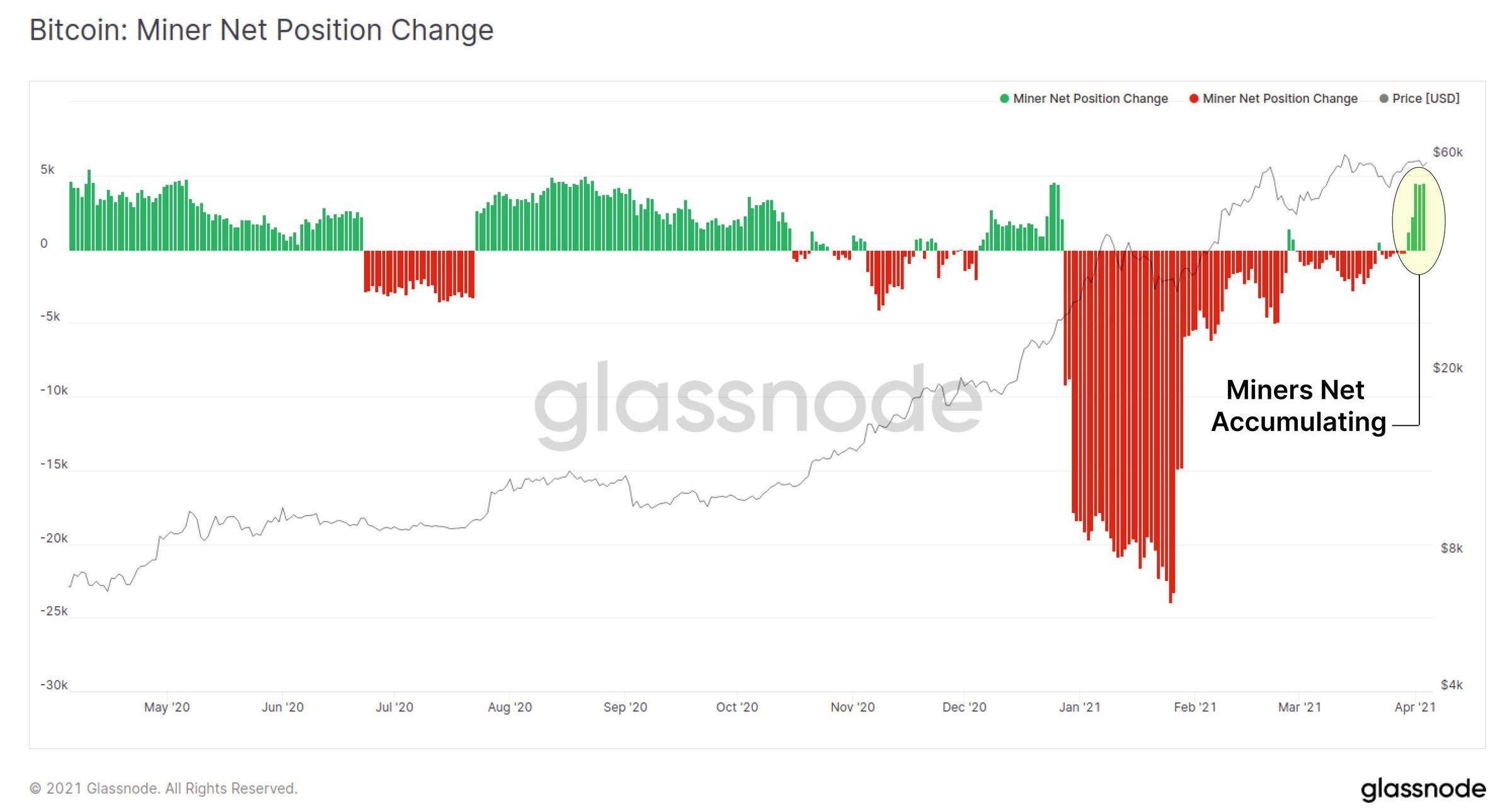 上周,我們展示了長期持幣者在過去三個月內放緩減持舊幣的情況,這一趨勢一直延續到本周。此外,礦工也加入了進來,礦工凈頭寸變化指標呈現綠色,這表明礦工選擇持有了新挖到的幣。