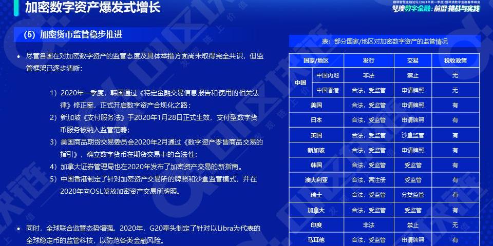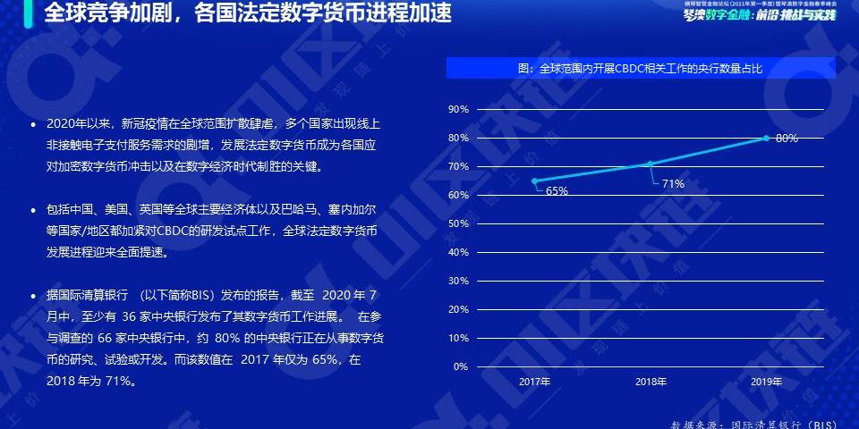 另一方面,2020年也是法定數字貨幣研發進程的關鍵轉折點,多個國家和地區對法定數字貨幣的態度出現積極轉變,全球法定數字貨幣研發進程提速。其中,數字人民幣表現突出,目前處于全球領先地位。截至2021年3月18日,數字人民幣已在深圳、蘇州、北京、成都等地先后進行了七輪紅包試點,共發放數字人民幣1.5億元。?
