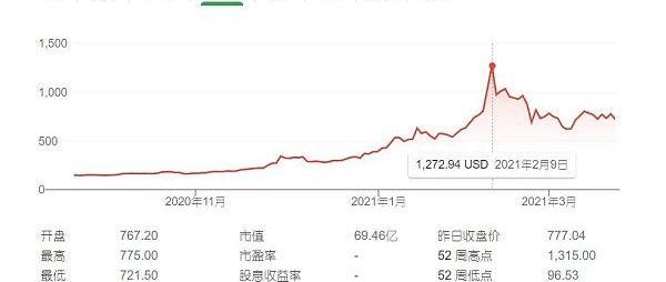 當然,購買比特幣也給MicroStrategy帶來了不小的收益。除了比特幣自身的誘人漲幅之外,還有此消息放出后帶來的股價上升。從去年開始,股價從買入比特幣前的在120美金左右,到現在(截至?3月?23?日)1272.94美金的歷史新高。