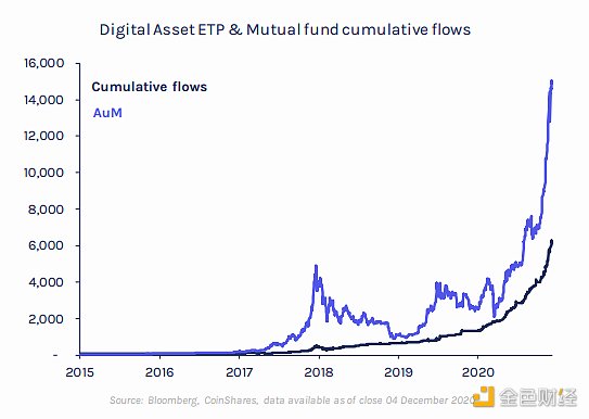 XRP/HKD-0.76%據Coinshare12月7日發布的覆蓋ETPs, 相互基金和OTC的加密資產流動周報,上周加密資產領域錄得2020年度第二大投資流入,共計4.29億美元。
