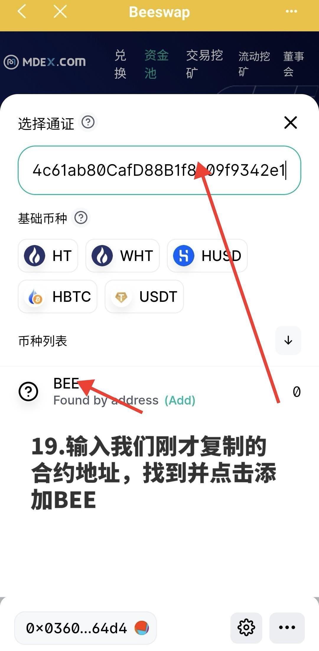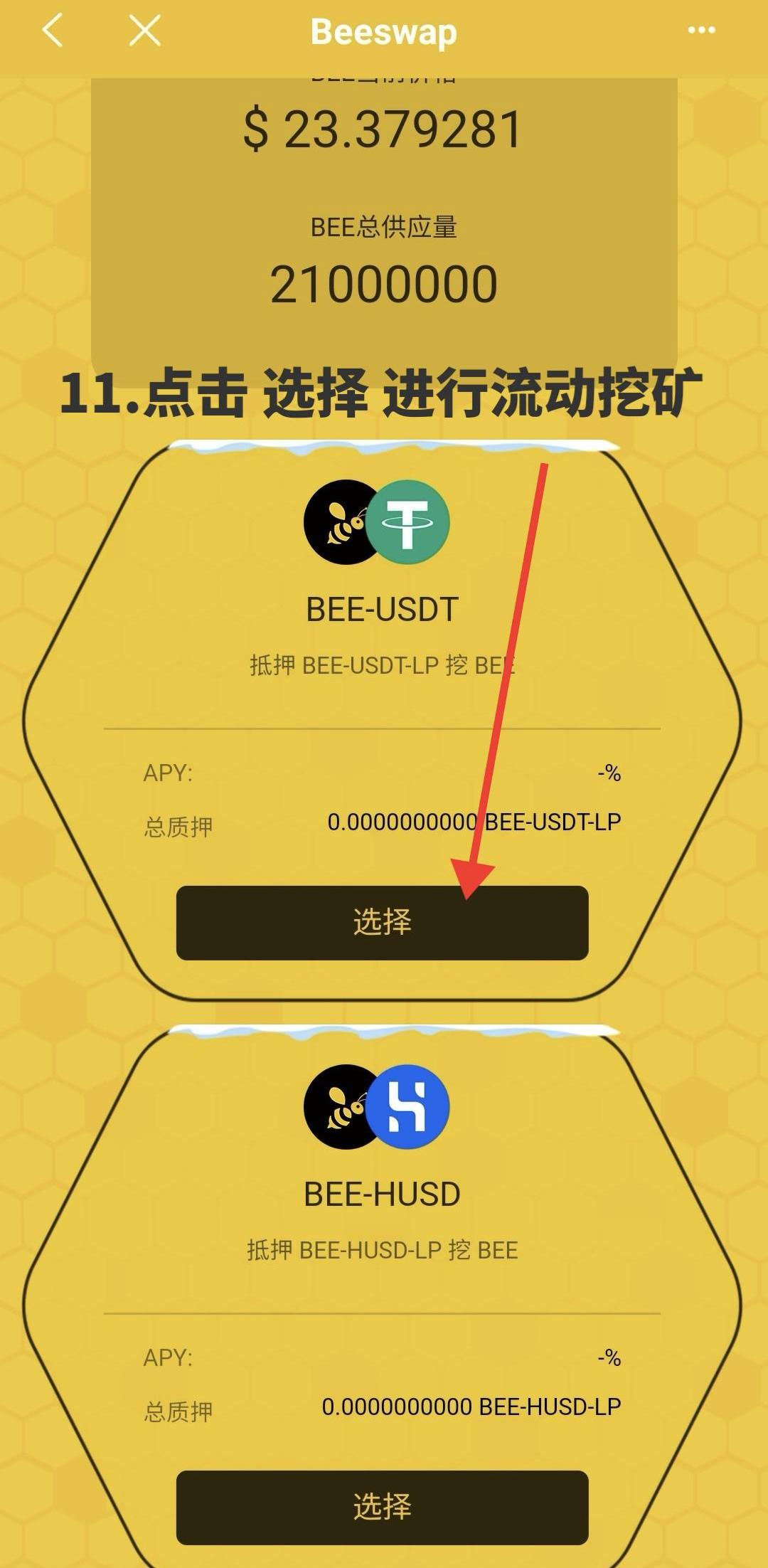 由于流動性礦池支持的是BEE-USDT和BEE-HUSDT,所以錢包里需要至少有BEE、USDT、HUSD