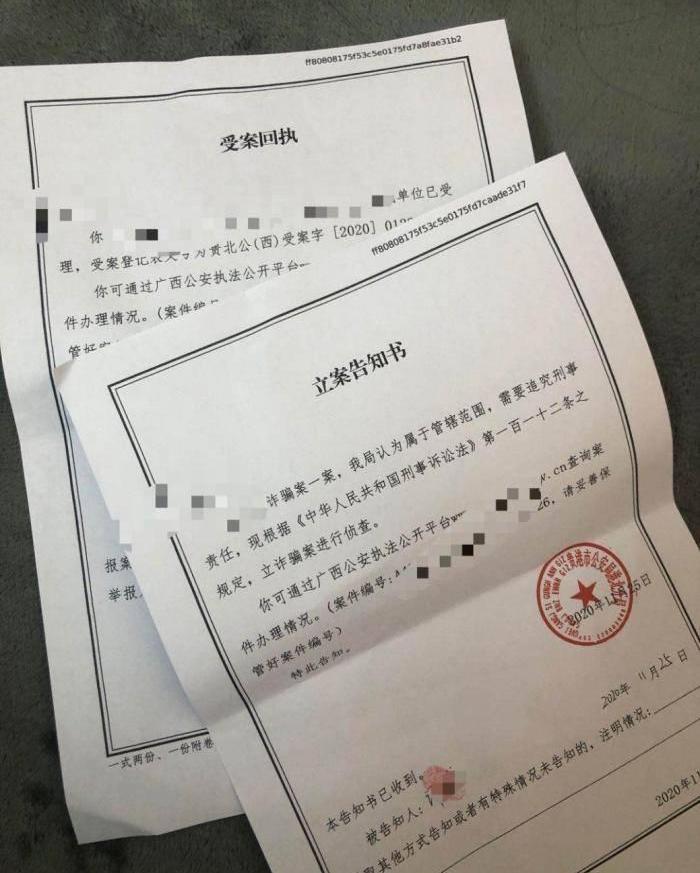 幾位投資人對記者展示的一份2020年11月25日的《立案告知書》顯示,廣西貴港市局港北分局認為案件屬于管轄范圍,需要追究刑事責任,現根據《中華人民共和國刑事訴訟法》第一百一十二條之規定,立詐騙案進行偵查。