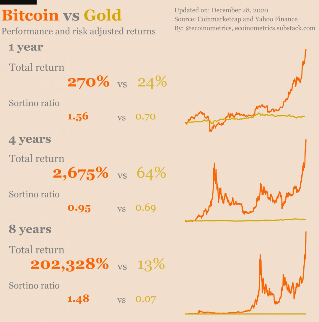 盡管存在兩種資產之間的脫鉤和相似之處,但這種比較存在并且不能否認,比起荒謬,比較就像是一種目標。它們使比特幣成為主流并推動采用,實際上,有人可以說“數字黃金”的全部敘述都是為了推動現實世界的采用。