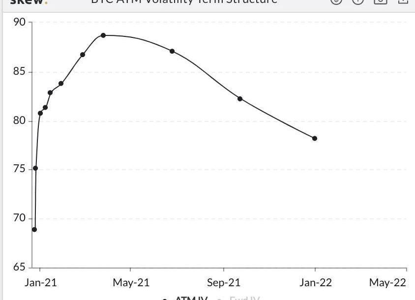 在一定程度上,期權價格會受到現貨價格的短期約束,導致隱含波動率出現短時間下行,短期隱含波動率降低到70以下。而從隱含波動率期限結構來看,遠期隱含波動率仍然保持在80-85附近。考慮到隱含波動率與期權定價間的關系,可以發現,無論是12月比特幣的歷史性突破,還是XRP的突發性事件,均為對比特幣的遠期定價產生明顯影響,進一步佐證了市場對比特幣未來的價值共識愈發堅實。