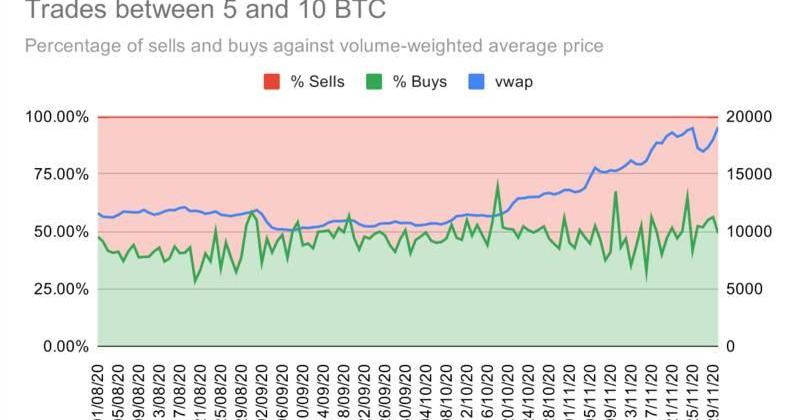 5-10BTC之間相對于上升VWAP的每日凈買賣差額。資料來源:Kaiko、OKEx