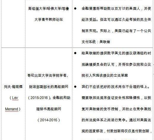 前面我們講到,除財政部長外,另一個關注點是美國總統下轄的辦事機構,目前媒體披露的財政政策過渡小組成員名單,很有可能在拜登正式執政后,繼續在諸如經濟顧問委員會、貿易代表辦公室等辦事機構擔任要職位。在這些名單中,有幾位在加密貨幣領域頗有建樹的經濟學者值得我們關注,其人物生平履歷和對加密貨幣的主要態度觀點如下表所示。