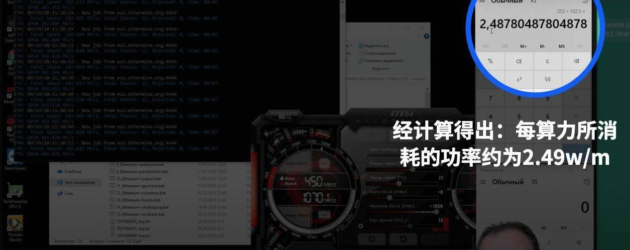 經計算,算力所消耗的功率約為2.49w/m,這是顯卡的最佳能效比。