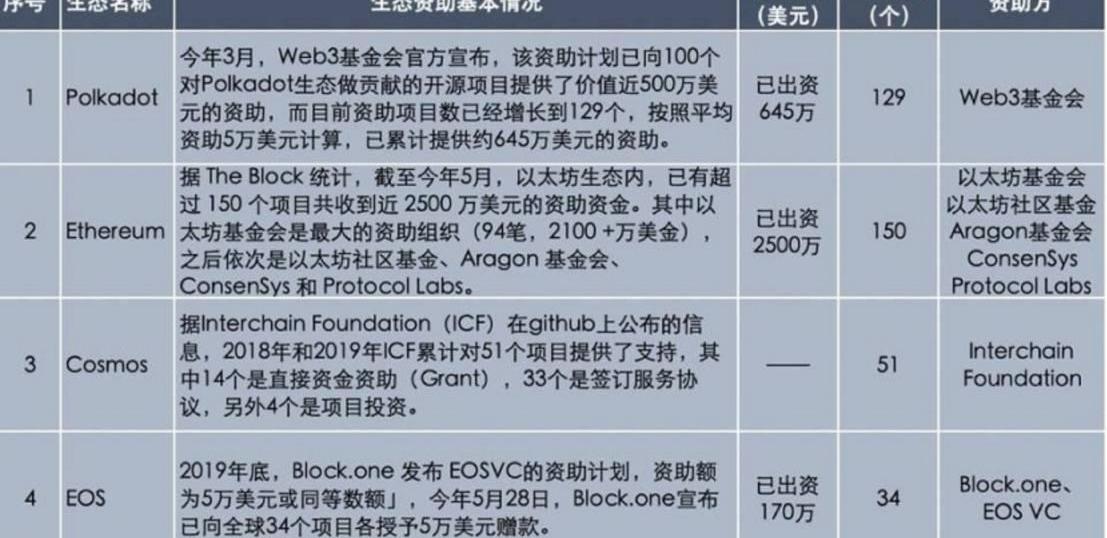 截止到今年3月份,波卡已經贊助了129個項目方在Substrate上進行開發。可以看到,波卡融到的大部分資金除了項目開發運營外,有645萬美金都是直接給了生態的開發者。