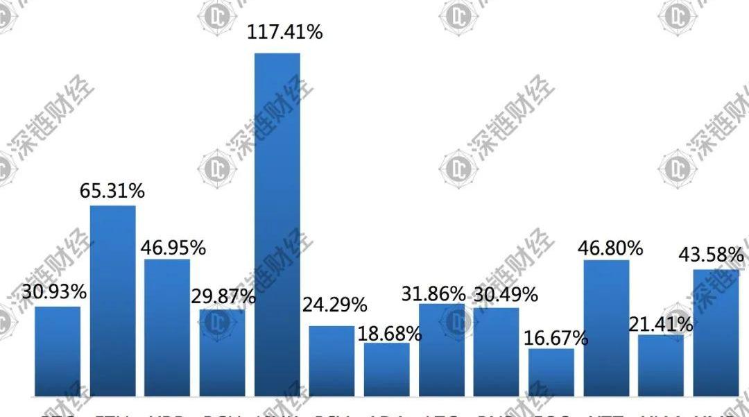 下圖是30日內預言機項目的漲跌幅對比,可以看出預言機板塊在LINK帶動下的瘋狂之勢。