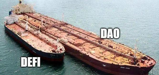 XRP/HKD-0.7%最近在多個社交平臺看到這樣一張MEME圖,身處加密圈的你肯定對DeFi不陌生,圖中所指比DeFi更大的DAO是什么,DeFi熱度猶在,新的浪潮已在醞釀?