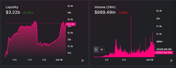 截至1月21日,Uniswap上的交易額已經超過了9月份DeFi繁榮期間創下的每月153億美元的紀錄,并且有望在1月底之前超過250億美元,平均每天達到8.55億美元。?