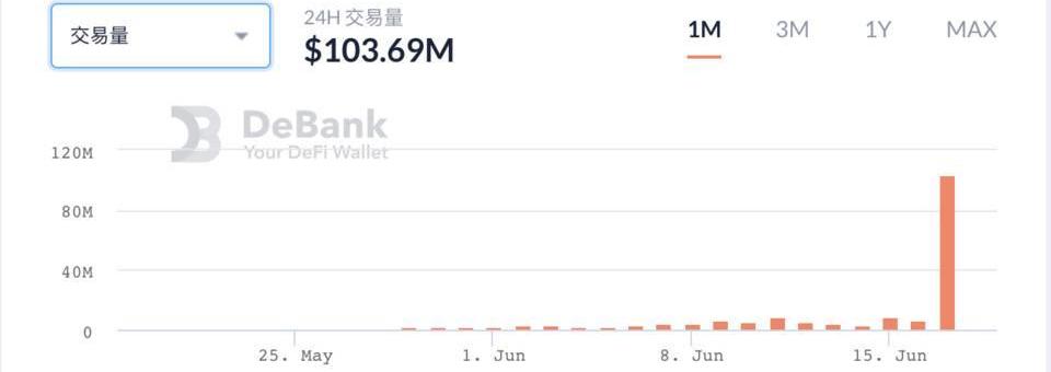 據DeBank數據顯示,去中心化交易協議Uniswap昨日總交易量增長超過14倍,至1.03億美元。最大的交易來源是ETH和UBOMB交易對,24小時交易量突破9000萬美元,但是從所有單筆交易來看,成交量并不大,所以產生如此大交易量的原因未知。UBOMB是UniBOMB項目的代幣,根據官網顯示,這是一個具有強通縮機制的流動性池。