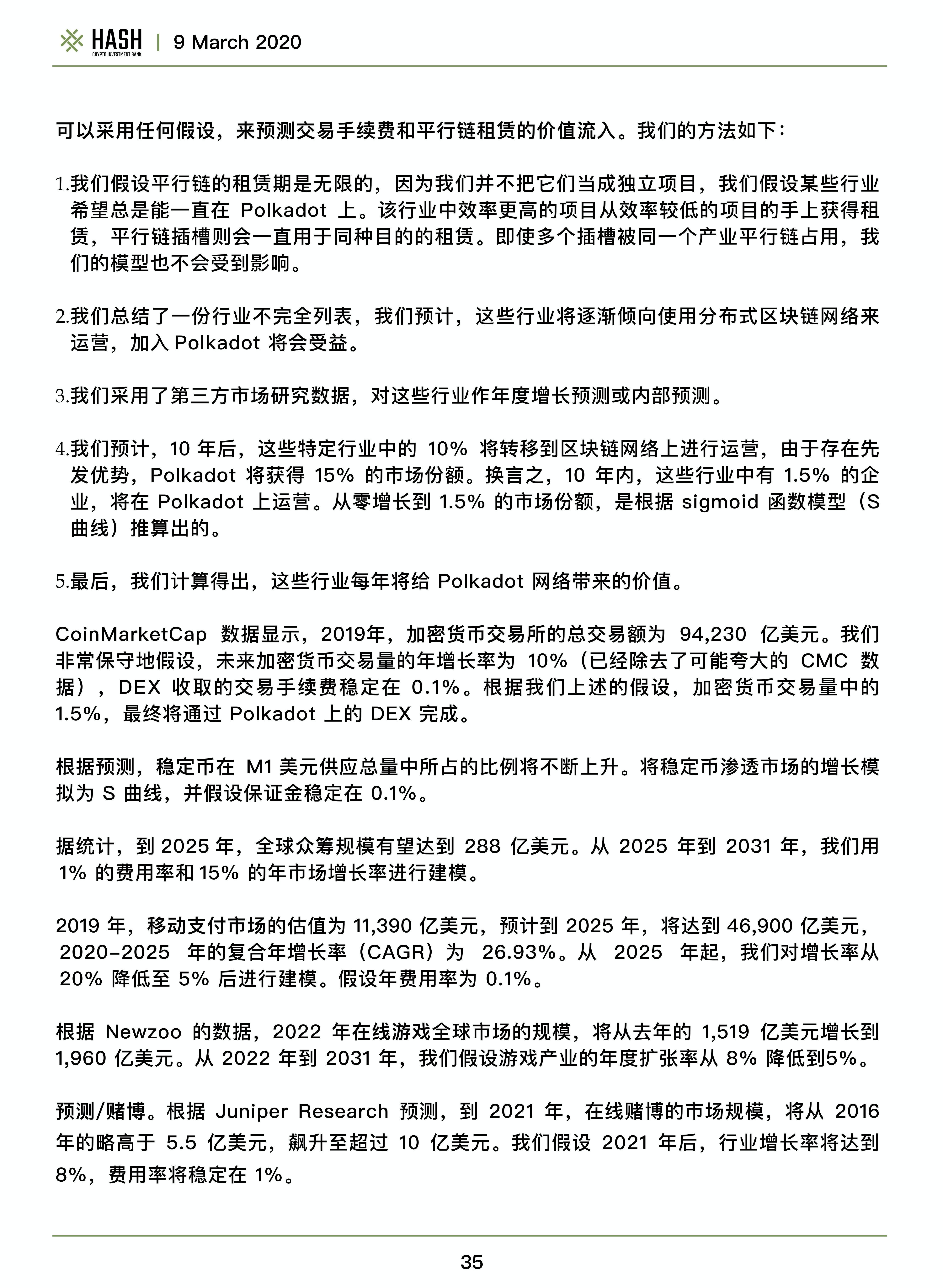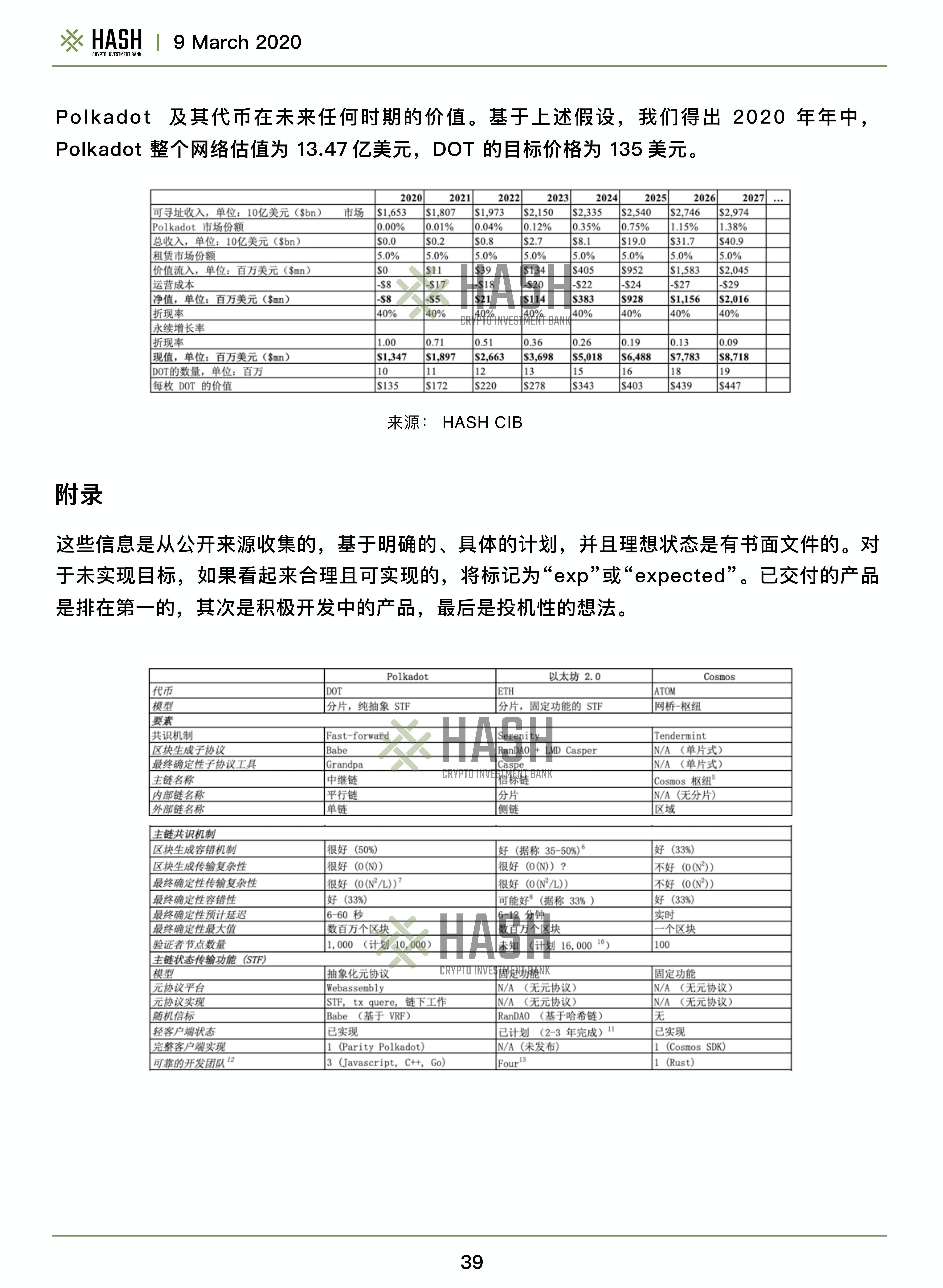 我們預計,截至2020年年中,Polkadot的估值為13.47億美元,DOT的估值為135美元。估值過程似乎是很簡單的,獲得一個具體的價格目標也是非常主觀的,因為很少有人知道其財務模型的具體因素。一切都必須基于假設,而所有的假設,都是具有爭議性的。我們建議讀者集中關注在所提出的估值方法上,并根據自己的假設來代入實際模型。