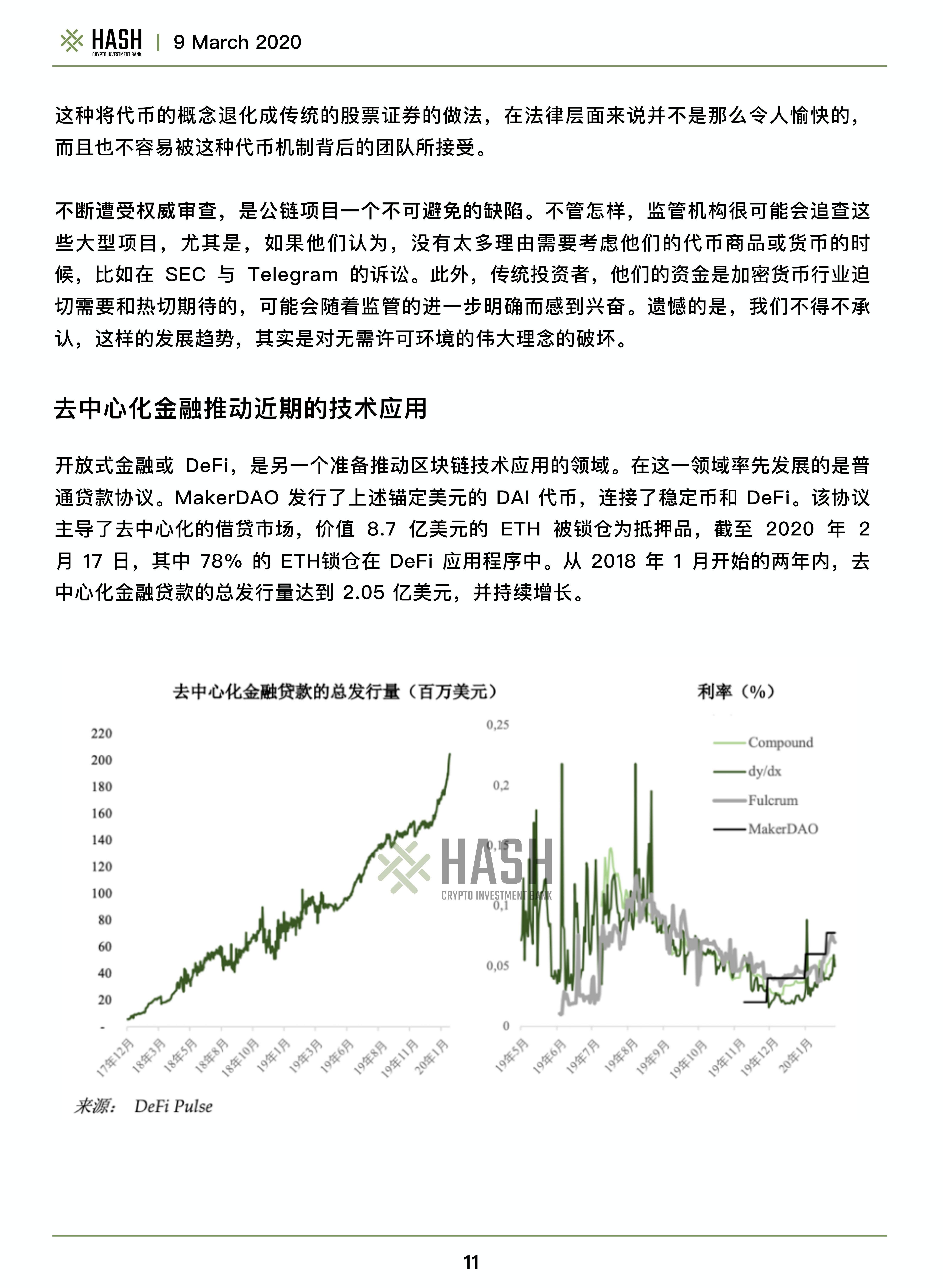 穩定幣和去中心化金融是區塊鏈技術應用的最初驅動力。鎖倉在以太坊上的deFi的總價值,已突破了10億美元,而穩定幣的日均總交易量超過600億美元。穩定幣消除了加密貨幣成為貨幣的關鍵障礙之一,即加密貨幣的波動性,而且穩定幣還摧毀了對旨在成為通用支付手段的加密貨幣的投資。這將使區塊鏈項目從通過使用量不斷增長來實現代幣增值的模式,轉變為代幣持有者能夠賺取一部分區塊鏈網絡「收入」的模式。傳統投資者應該熟悉這種代幣經濟學,尤其是在這種范式下對加密貨幣進行估值,需要一種明確的DCF估值方法。