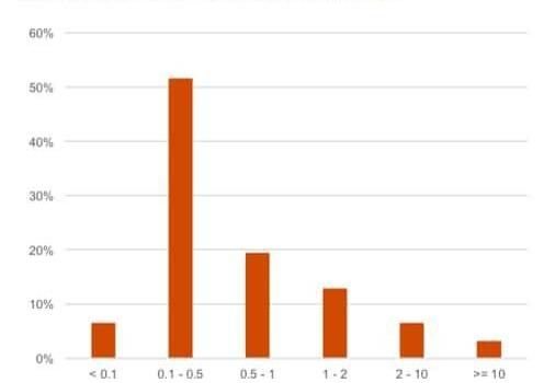 被調查的加密對沖基金平均擁有59名投資者,投資票額的均值為310萬美元,但平均票額的分布情況顯示,近三分之二的基金的投資票額低于50萬美元。
